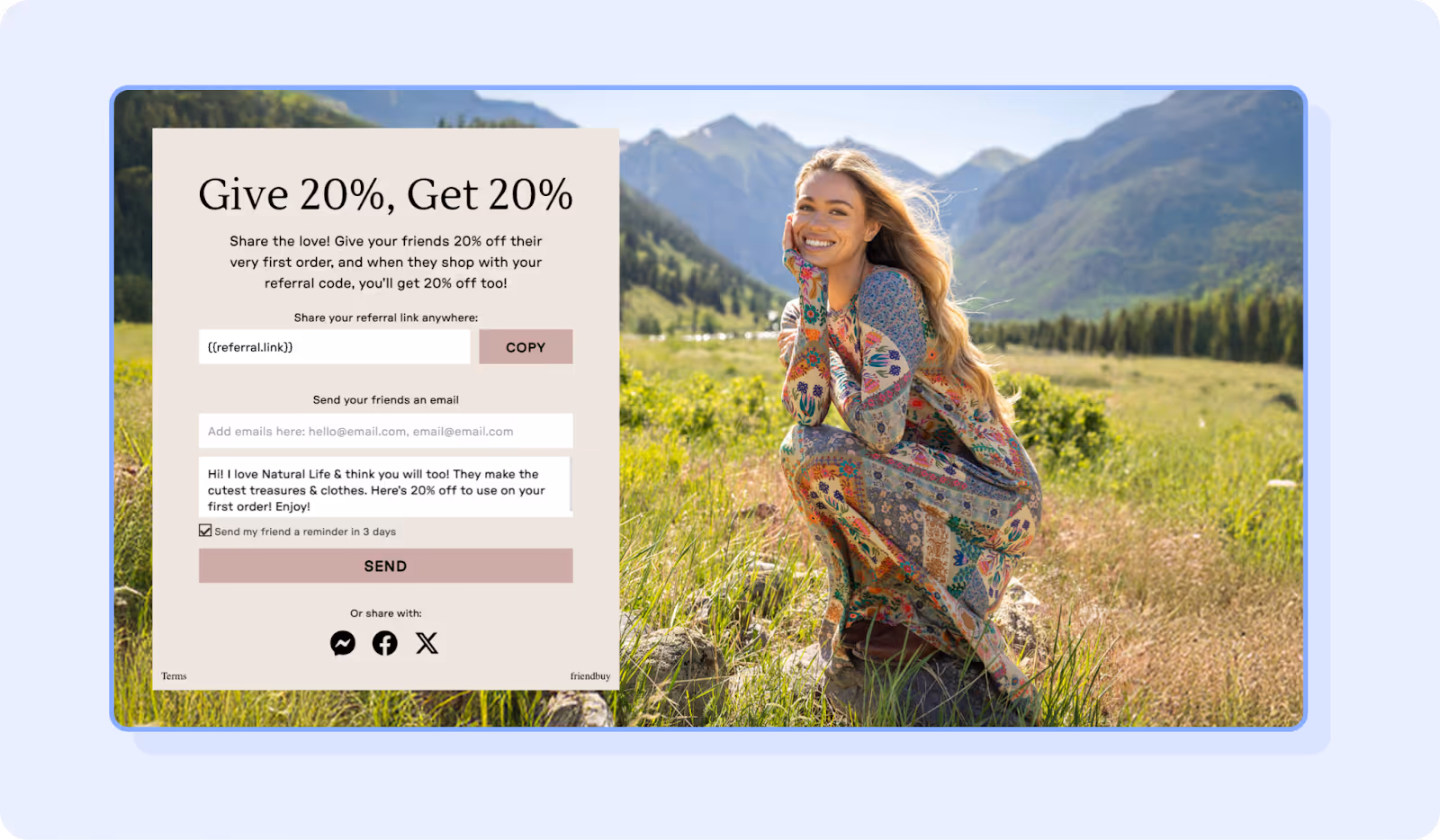 “Friendbuy’s referral platform fits seamlessly with our brand and makes it effortless for our community to share Natural Life with friends who love our vibe.”