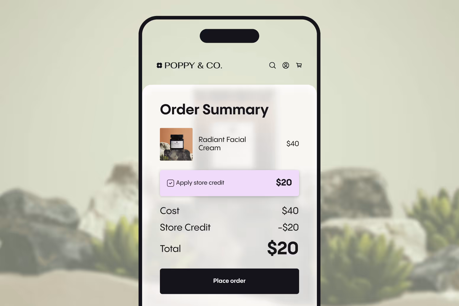 Customers redeem credit directly in Shopify's checkout—no custom UI needed.